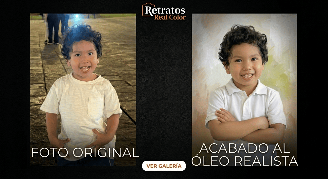 "Increíble el parecido, parece que mi hijo fuera a salir del cuadro. La textura del óleo le da una vida que ninguna foto tiene. Llegó perfecto y muy bien protegido." — Familia Lozano. (Lima)